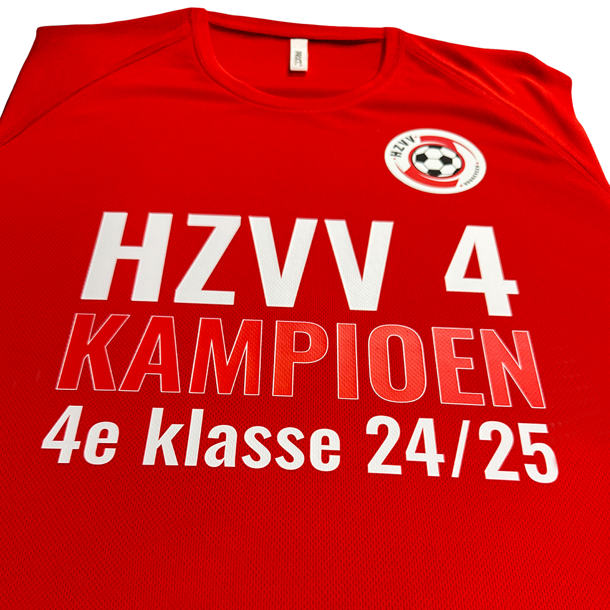 Zoals gezegd kun je bij ons eigen sportshirts laten bedrukken met eigen logo’s en/of teksten. Bij de bedrukking opties hierboven kun je de positie van de opdruk bepalen. Op de voorzijde kun je de logo’s laten bedrukken op de linker- en rechterborst en groot in het midden. Achterop is een groot vlak beschikbaar voor een naam/tekst aan de bovenzijde en/of een groot logo in het midden. Mochten jouw wensen hier niet tussen zitten? Neem dan gewoon even contact met ons op, de kans is erg groot dat wij het kunnen regelen. Wij drukken de sportshirts door middel van DTF transfers (full-colour) of zeefdrukken het (één kleur). Voor een full-colour bedrukking valt de prijs iets hoger uit. Het is tevens geen probleem om verschillende logo’s te laten bedrukken, bijv. het logo van de school in combinatie met een sponsorlogo of bepaalde tekst.