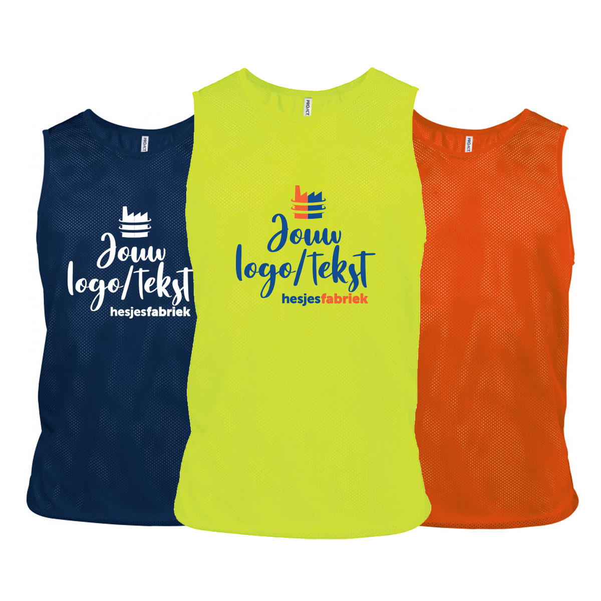 Trainingshesjes bedrukken? Voor het drukken van sporthesjes ben je bij Hesjesfabriek.nl aan het juiste adres. Wij bedrukken trainingshesjes volledig in eigen huis waardoor wij ten eerste voordelig, super snel en geheel naar eigen wens de trainingshesjes kunnen bedrukken. Bij ons kun je de trainingshesjes op verschillende posities laten bedrukken, zoals klein op de borst, groot achterop of beiden. Deze opties vind je bij het bestelproces. Wij hebben de beschikking over diverse drukmachines waardoor we voordelig en snel in één kleur of full-colour kunnen bedrukken. Deze trainingshesjes zijn gemaakt van 100% polyester Mesh materiaal. Mesh houdt in dat er hele kleine gaatjes in zitten wat zorgt voor optimale ventilatie en is daarnaast ook nog eens sneldrogend. Dit maakt de trainingshesjes uitermate geschikt voor sportevenementen, voetbaltraining, hockeytraining en alle andere teamsporten. Onze sporthesjes zijn verkrijgbaar in vijf verschillende maten 6 jaar, XXS/XS (t/m 12 jaar), S/M (junioren), L/XL (senioren) en XXL/3XL (groot volwassenen). Je kunt deze bedrukte hesjes bestellen in 11 verschillende kleuren (roze, rood, wit, zwart, geel, oranje, donkerblauw, blauw, lichtblauw, paars en groen). Toch liever een ander type hesje nodig? bekijk al onze producten hier.
