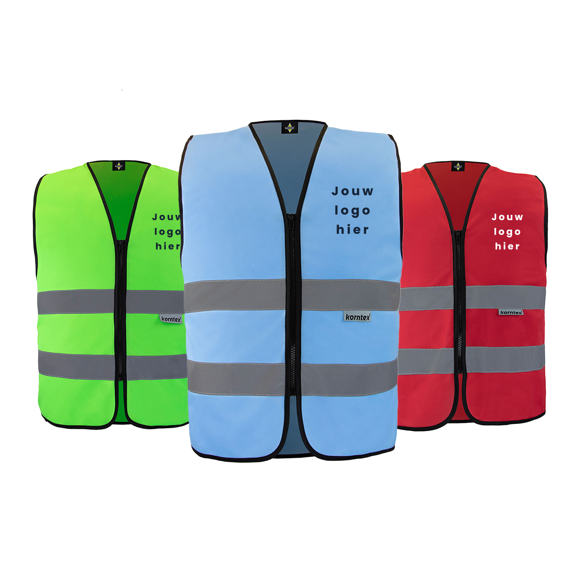 zoek naar nieuwe veiligheidshesjes voor jouw bedrijf, vereniging of instelling? Bij ons kun je deze hoge kwaliteit hesjes met rits bedrukken voor de beste prijs en levertijd uit Nederland en België. Deze veiligheids hesjes zijn verkrijgbaar in alle kleuren en hebben een ritssluiting aan de voorzijde zodat ze als jasje gedragen worden. Je kunt deze hesjes op verschillende posities laten bedrukken, zoals op de voorzijde (zowel links als rechts) als op de achterzijde. Bij ons kun je zowel logo’s, teksten als afbeeldingen laten bedrukken in één kleur, full-colour of reflecterend grijs. Bestel de bedrukte vesten hieronder of vraag een offerte op maat aan (zelfde prijzen). Aan te raden is om ruime maten te bestellen, want de hesjes vallen klein en worden vaak over een trui / jas gedragen.