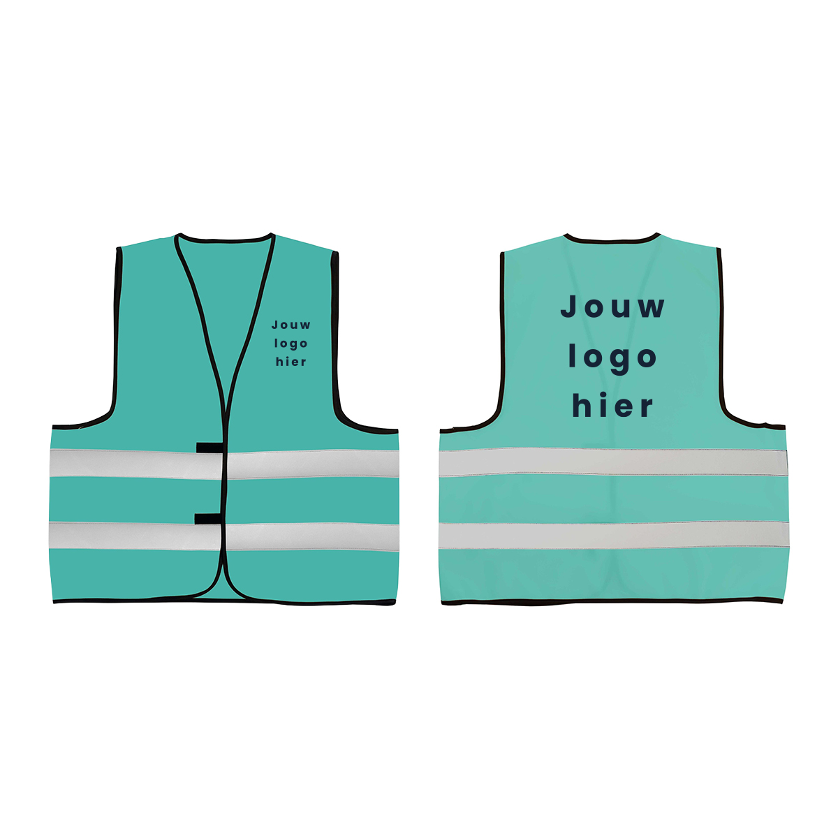 trong>Turquoise veiligheidsvesten bedrukken met logo, afbeelding en/of teksten? Deze goedkope veiligheidsvesten zijn enorm geschikt voor promotie van jouw bedrijf, extra zichtbaarheid van de medewerkers of gebruik tijdens evenementen. We kunnen de turquoise veiligheidshesjes bedrukken met logo’s in één kleur en full-colour voor de beste prijs op deze markt. Tevens worden de hesjes erg snel geleverd, binnen 2-3 werkdagen als dit nodig is. Deze hesjes zijn verkrijgbaar in twee maten voor kinderen en een one-size maat voor volwassenen (XL). Bestel de bedrukte veiligheidsvesten direct of vraag een offerte op maat aan. Na ontvangst van de bestelling maken we altijd een digitale proefdruk ter goedkeuring.